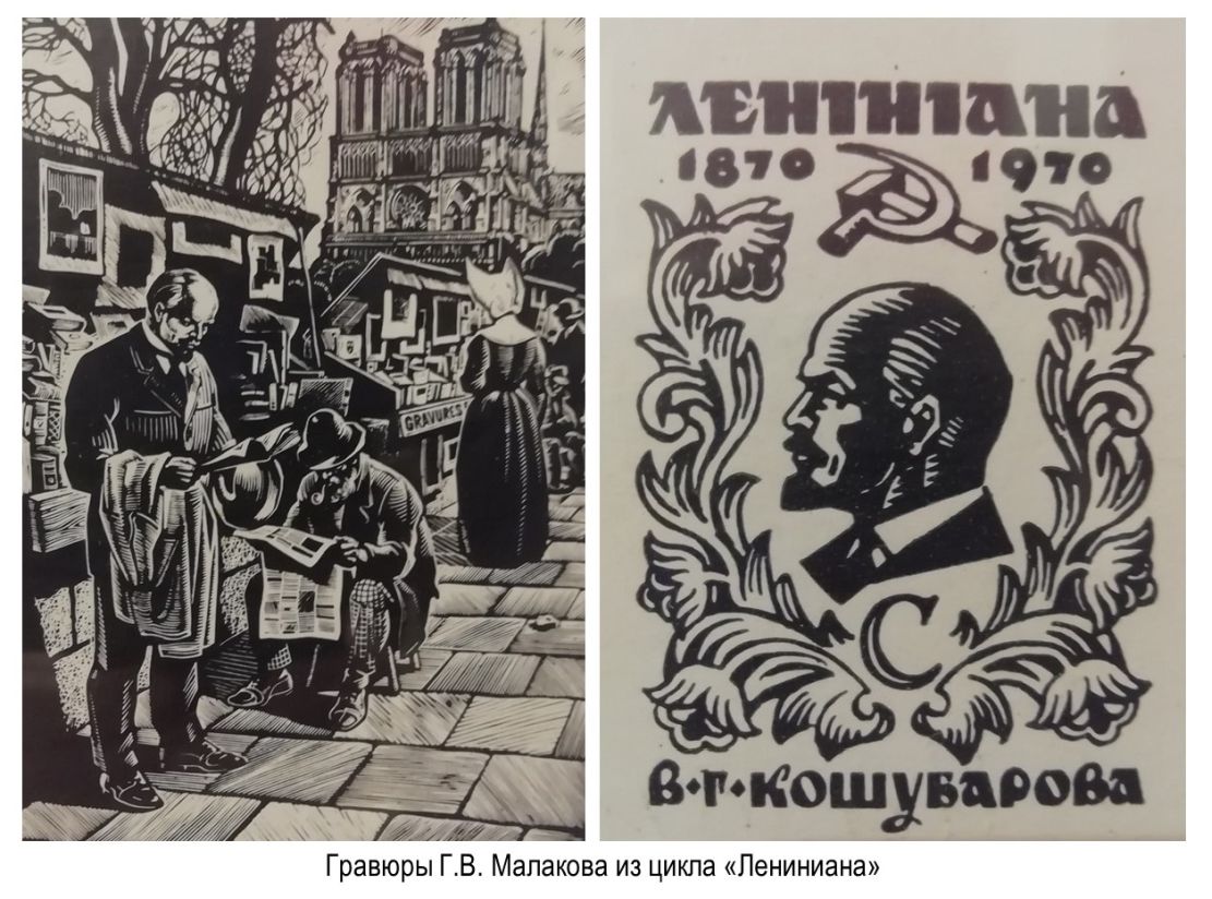 Георгием Васильевичем создана целая галерея веселых, смешных и даже фривольных миниатюрных линогравюр. По словам коллекционера Александра Чернова, художник из-за этого даже не мог получить звание «заслуженного»: пышнотелые красавицы не «вписывались» в советские цензурные рамки. Коллеги посоветовали Малакову «реабилитироваться», прибегнув к проверенному способу – создать цикл гравюр к столетию со дня рождения В.И. Ленина, что им мастерски было выполнено, а вскоре получено и звание.