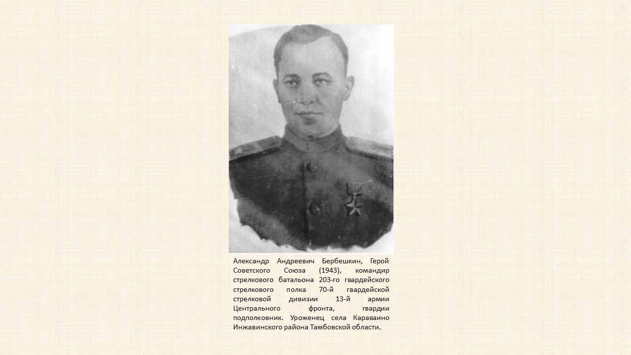 Бербешкин Александр Андреевич (1916-1944). Подполковник. Герой Советского Союза, награжден орд. Ленина, Кр. Знамени, Кр. Звезды.